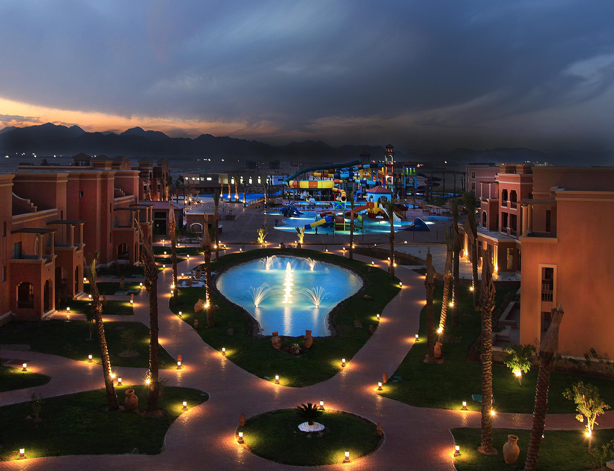 • Nestled in the scenic Nabq Bay of Sharm El Sheikh and conveniently adjacent to the airport, Charmillion Club Aqua Park , situated just 1 km from the beach, is the ideal destination for families and thrill-seekers alike.