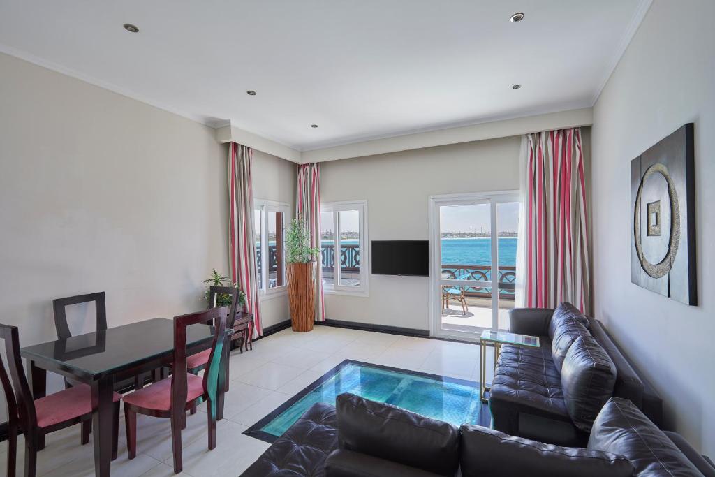 • Fitted with elegant furnishings and artworks, each suite has a private access to the lake, air conditioning, TV, terrace, Jacuzzi, kitchenette, refrigerator, microwave, dining area, electric kettle, outdoor furniture, bed rooms, living rooms and an en suite bathroom.  Some Suites have a glass floor over the Marina Lake to enjoy seeing the fishes & lake crystal water. Some Special Suites have the glass floor plus a private swimming pool with panoramic view over the Marina Make.