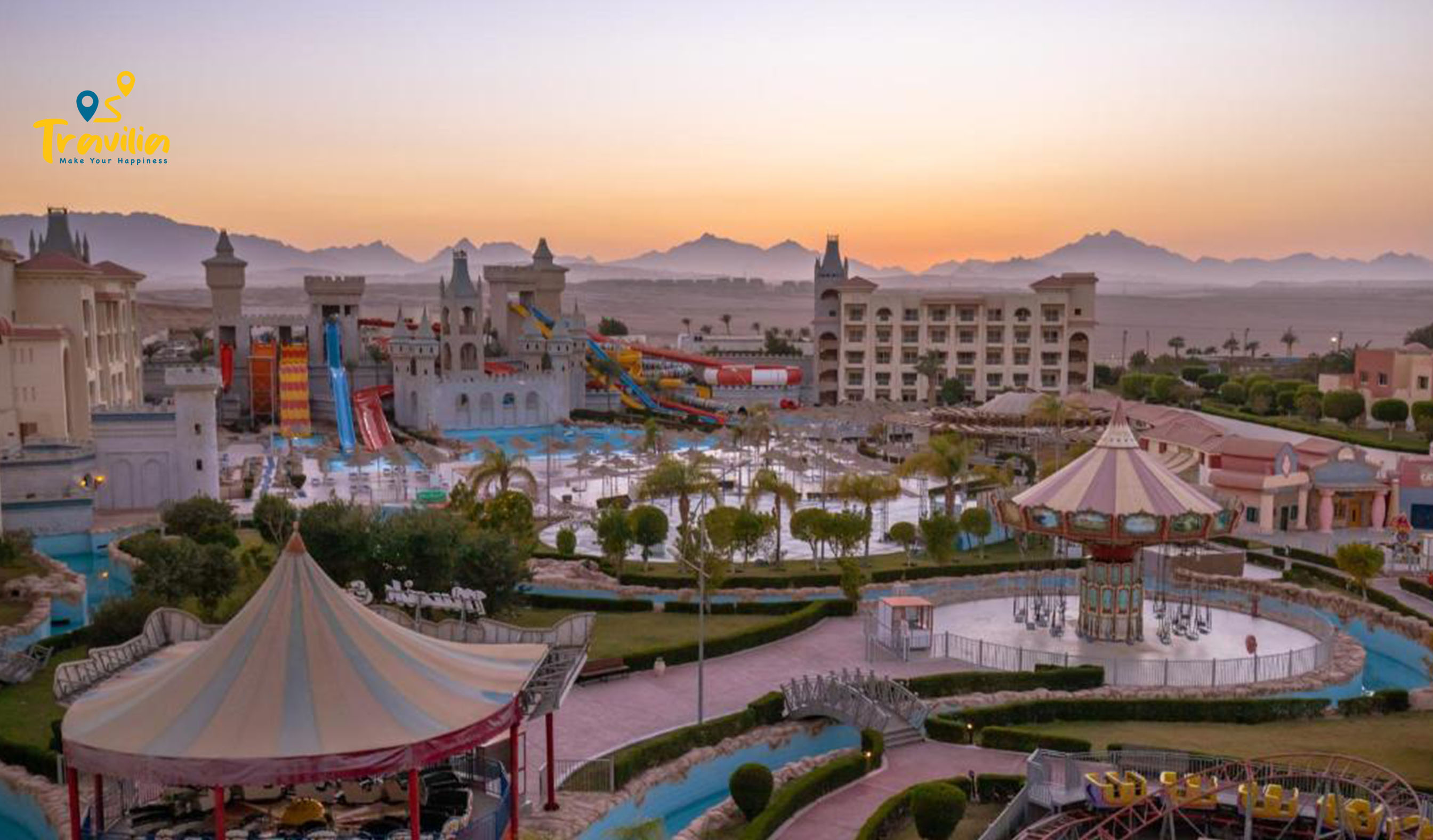 • Featuring an aqua park with a complete amusement center, Serenity Fun City Resort is located in Hurghada. WiFi access is available in the lobby of this resort. This resort offers an outdoor pool, a gym and a spa. The hotel has 1 main restaurant and 5 a la carte restaurants: Italian, Oriental, Asian, French, Mexican (opening subject to operation needs & seasonality) and food court. In addition the Fun City Makadi has 4 large bars either in the lobby or at the swimming pools with aqua park view.
