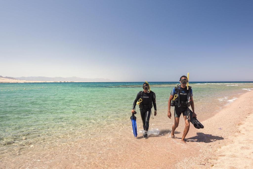 • يوفر مكان الإقامة هذا المواجه للبحر شاطئ رملي مرجاني يمتد على طول 1100 متر على خليج العقبة