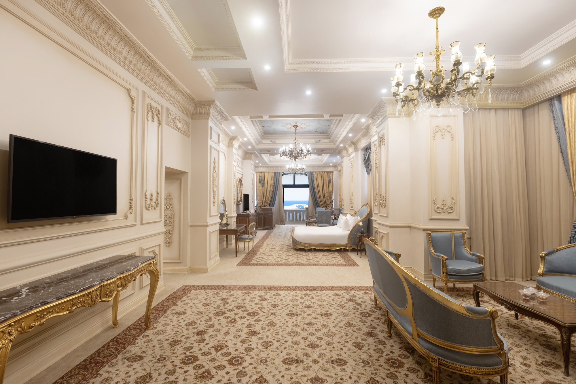 استمتع بأقامة فاخرة في قصر المنتزة المطل علي البحر المتوسط والمس التاريخ في اجنحتنا الملكية الفاخرة المصممه بعناية شديدة لتشعرك برونق القصر ووضعت اصول الخديوي عباس حلمي الثاني, حيث تلتقي الاناقة الكلاسيكية بالراحة العصرية لتقديم تجربة لا مثيل لها مع اطلالة خلابة من الدرجة الاولي علي شاطئ البحر المتوسط.
