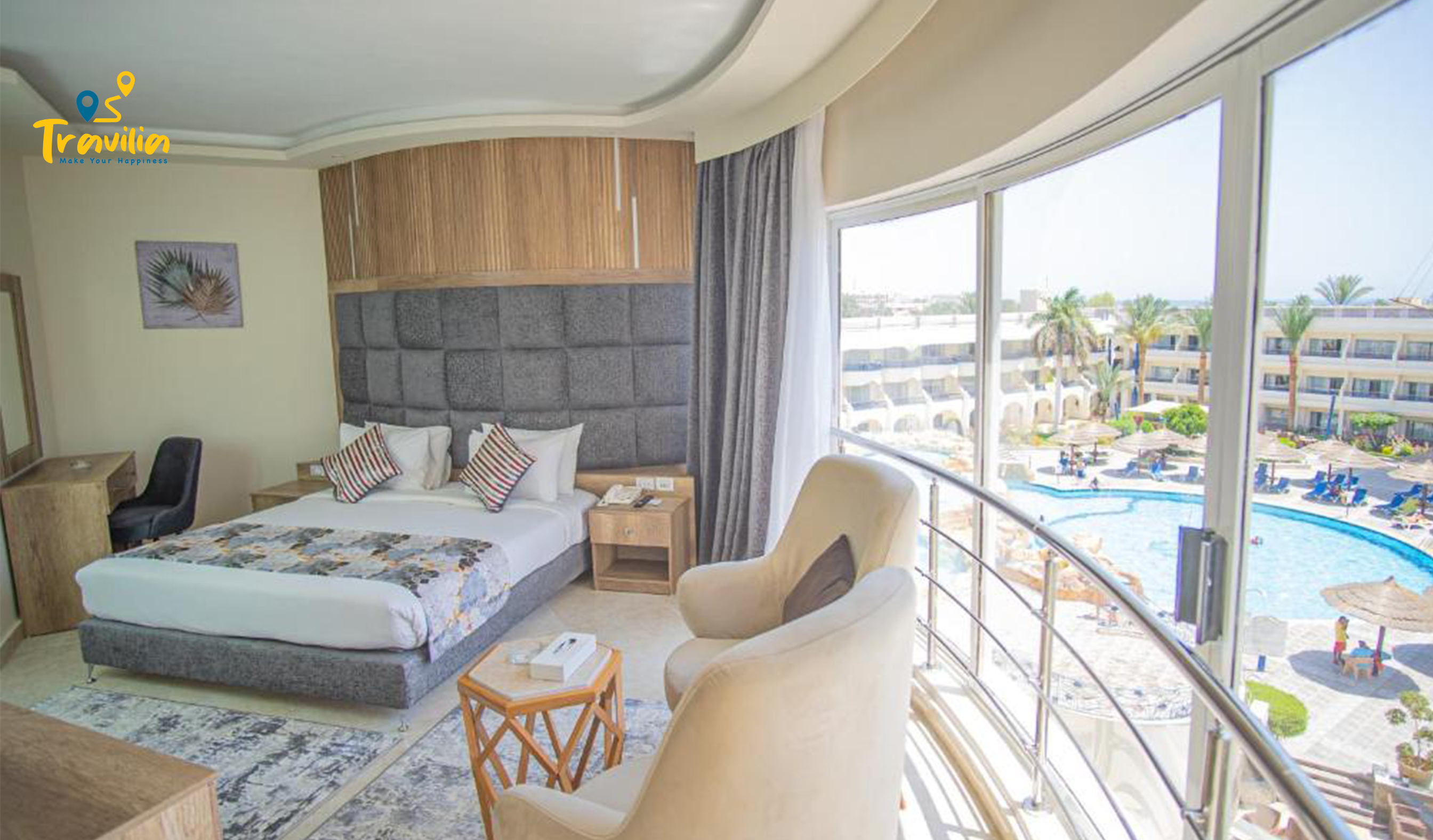 • يقع هذا المنتجع المصنف 4 نجوم على شاطئ البحر الأحمر مباشرة، ويوفر غرفاً مكيّفة مع شرفة، كما يحيط بالـ 5 مسابح الرائعة كراسي استلقاء مظللة، ويتوفر أيضاً مسبح للأطفال مع منزلقات مائية، كما يمكن للضيوف الاستمتاع بخدمة الواي فاي مجاناً في صالة تناول الطعام ومناطق الشاطئ بين الساعة 8 صباحاً وحتى منتصف الليل. تم تزيين الغرف الواسعة على الطراز الحديث، وتتميز جميع الغرف بأنها مكيّفة وتوفر تلفزيون مع قنوات فضائية وثلاجة صغيرة وصندوق ودائع مجاناً وهاتف للاتصال المباشر ومجففاً للشعر.