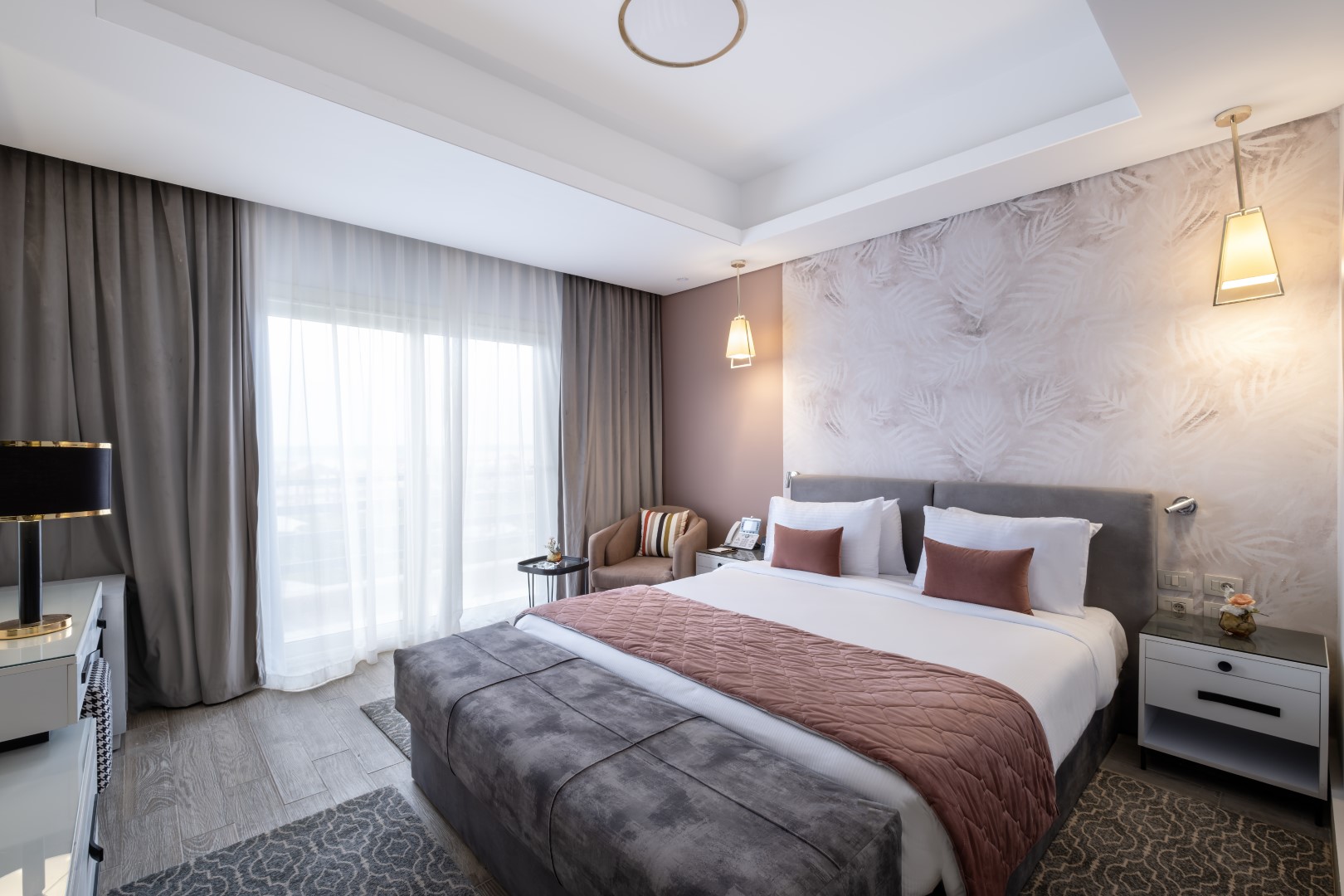 • Each room at Gewan Resort New Alamein is air-conditioned and has a wardrobe with flat-screen TV, a private bathroom, drinks and towels, comfort with a garden view. All rooms have a room, while some rooms offer a kitchen with a fridge, an oven and a sundeck. Units have a safety deposit box.