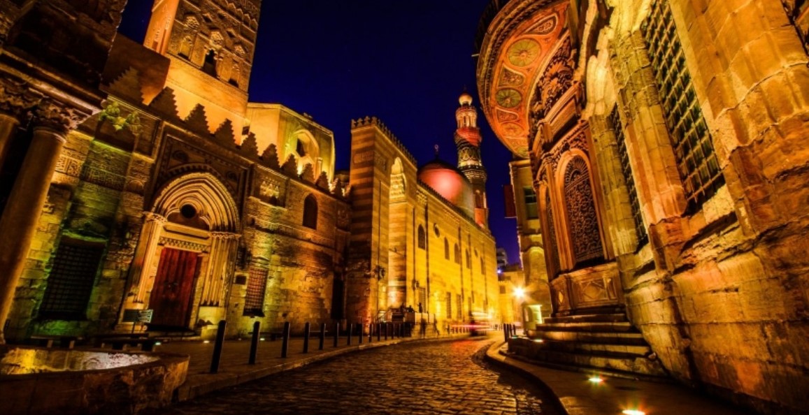 • Go to Al-Mu'izz Street and Al-Hussein mosque, as Al-Mu'izz L-din Allah al-Fatimi Street is one of the best tourist places in Cairo, where you will feel like you have traveled through time to ancient Islamic times.the street is an open museum containing many Islamic antiquities, where you can shop, buy accessories, silver and souvenirs, try on ancient folk dress, take souvenir photos and draw henna.