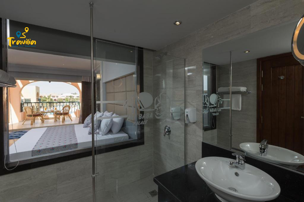 • يقع منتجع علي بابا بالاس في مدينة الغردقة، ويضم منطقة شاطئية خاصة به وأحد أكبر المسابح الخارجية في الغردقة، كما يشمل هذا المنتجع المصنف 4 نجوم مركزاً للغوص ومركزاً للألعاب والرياضات المائية.