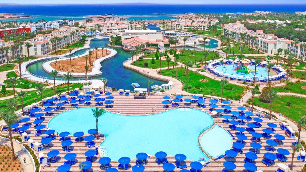 • يقع هذا المنتجع المواجه للبحر والمصنف 5 نجوم في مدينة الغردقة، وهو مكان إقامة يقع على البحر الأحمر ويتميز بشاطئ رملي خاص، كما تشمل وسائل الراحة مسبحاً خارجياً على طراز البحيرات الشاطئية ومركزاً للغوص وبار بيانو، فيما تحتوي جميع الغرف على شرفة خارجية.