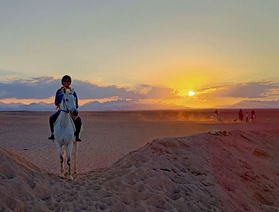 • استمتع بفرصة نادرة لركوب الخيل وتجول في صحراء الغردقة لاستكشاف مواقع طبيعية مميزة والاستمتاع بالتقاط الصور التذكارية الجميلة