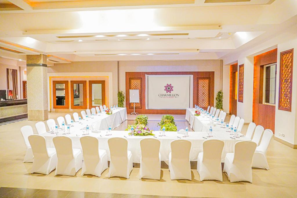 • International dishes are served at the main restaurant. There is a Japanese Teppanyaki, while traditional Lebanese specialties are offered at El Dewania. There is also a 24-hour all-inclusive service and a dine-around concept, where guests can eat and drink at bars in sister hotels of Charmillion Group Resorts