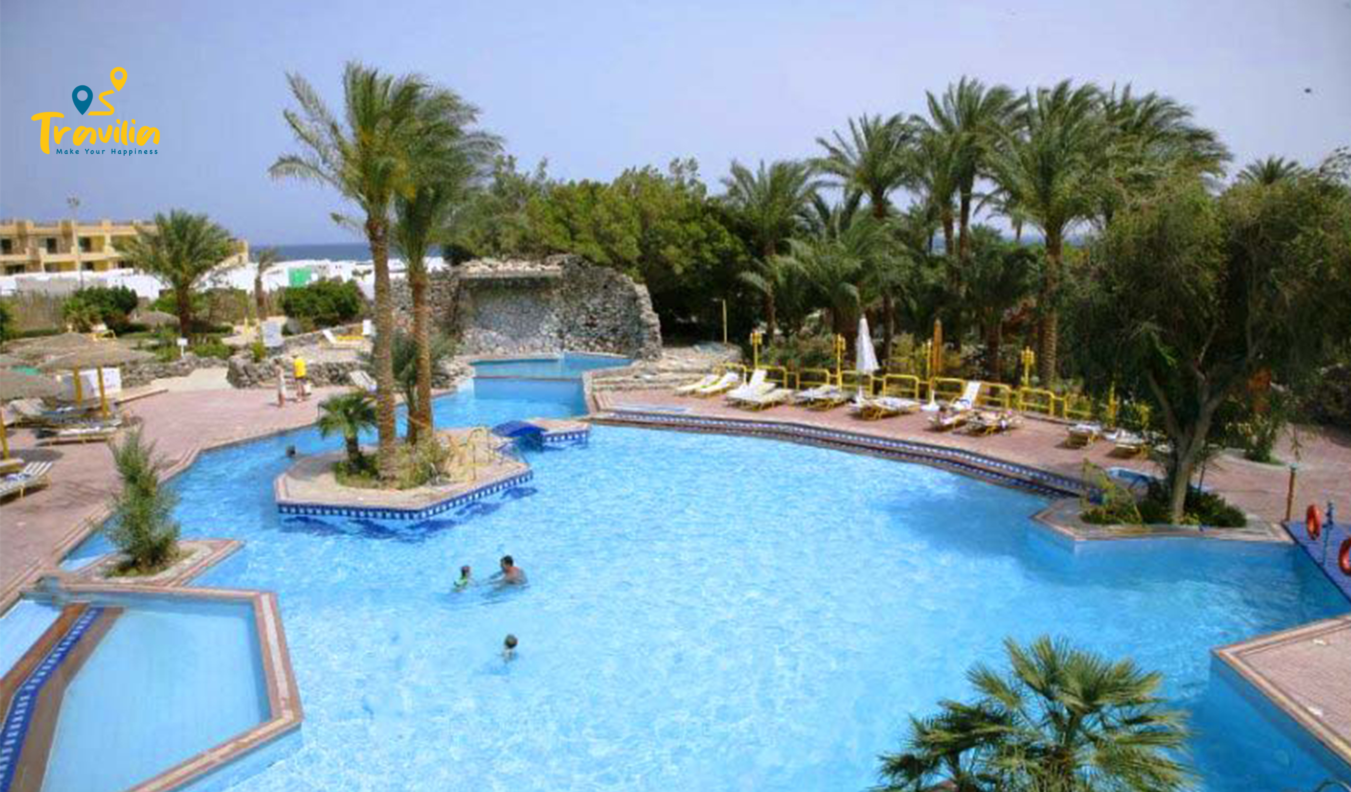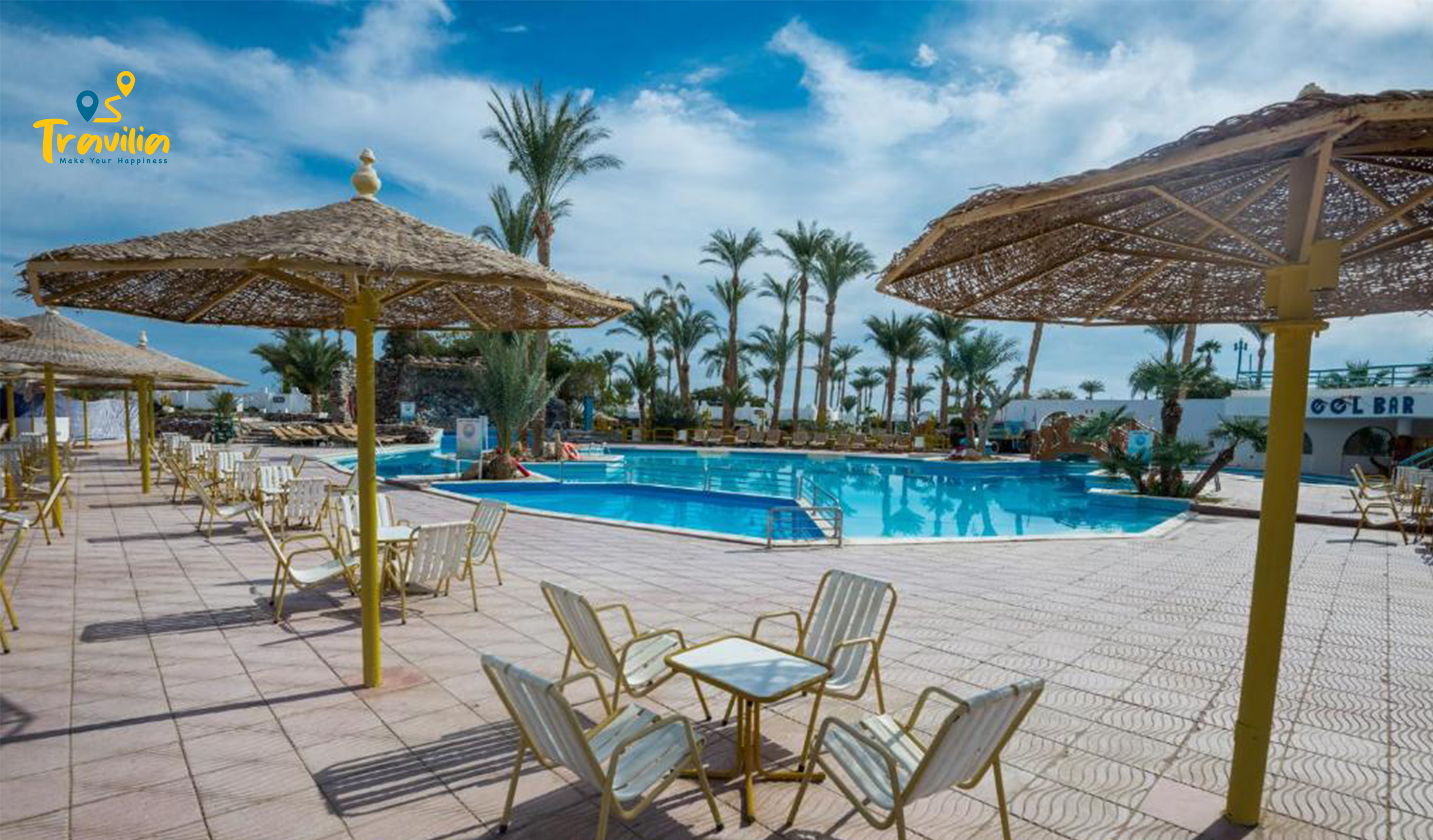 • Located in Safaga along the Red Sea coast, this 4-star Shams Resort has a 700-yard private, sandy beach and an outdoor pool. Guest rooms offer a private balcony with a view of the sea or the resort’s lush gardens.