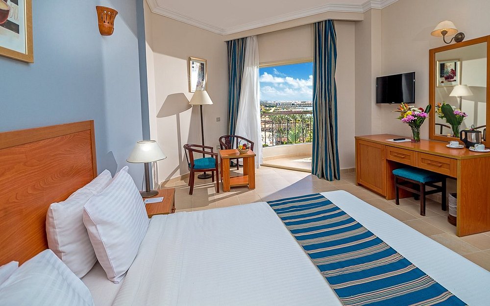 • It is set amidst a beautifully landscaped garden overlooking the Hurghada coast and the Red Sea.