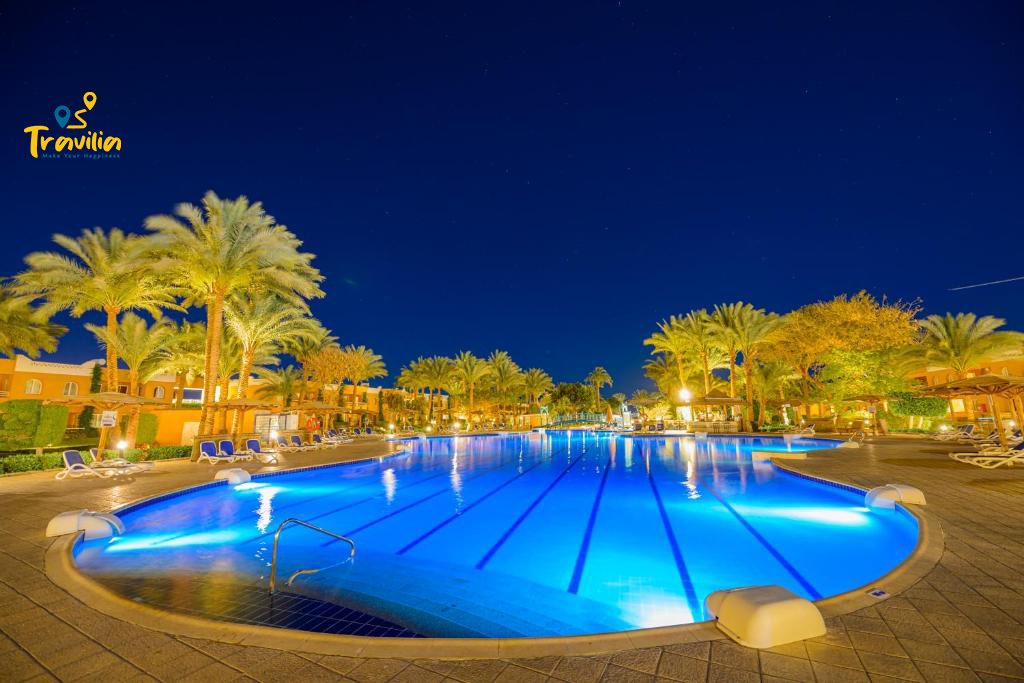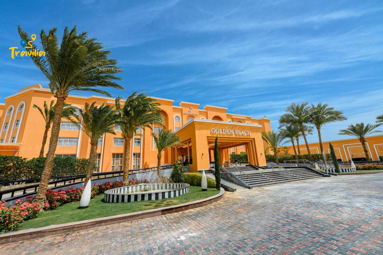 • يقع منتجع العطلات جولدن بيتش ريزورت الشامل كلياً على بعد حوالي 15 كم من شمال غرب مدينة الغردقة، ويوفر شاطئ رملي خاص على طول البحر الأحمر، كما يوفر 7 مطاعم و8 بارات.