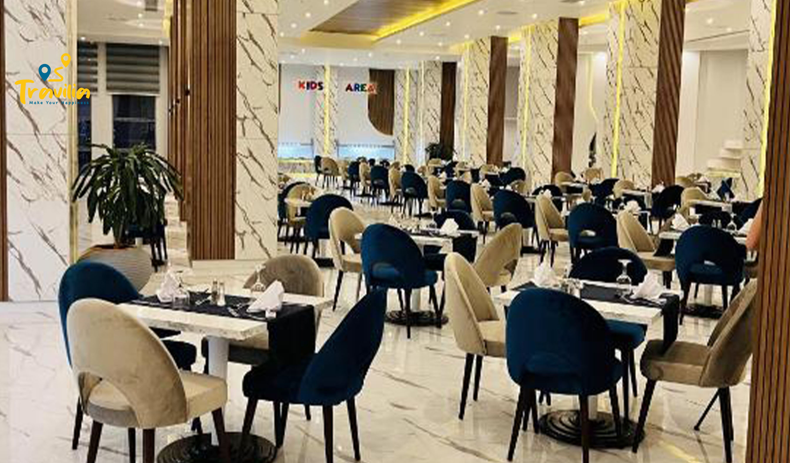 • يمكن للضيوف الاختيار من بين 7 مطاعم عالية الجودة و6 بارات أنيقة، ويمكن تذوق المأكولات العالمية في مطعم Al Dente، بالإضافة إلى مطعم D’White الرئيسي، كما يتم تقديم المأكولات الإيطالية في مطعم La Casina، بينما يتم تقديم المأكولات العالمية في مطعم Podium ذو قائمة المأكولات، ويتم تقديم المأكولات المتوسطية في مطعم Z'etes، في حين تتوفر المأكولات النوبية في مطعم Aikadolli، ويتم تقديم المأكولات الآسيوية في مطعم Happy Buddha، كما تتطلب المطاعم المتخصصة الحجز المسبق، فيما يمكن للضيوف الاستمتاع بإطلالات جميلة على البحر.