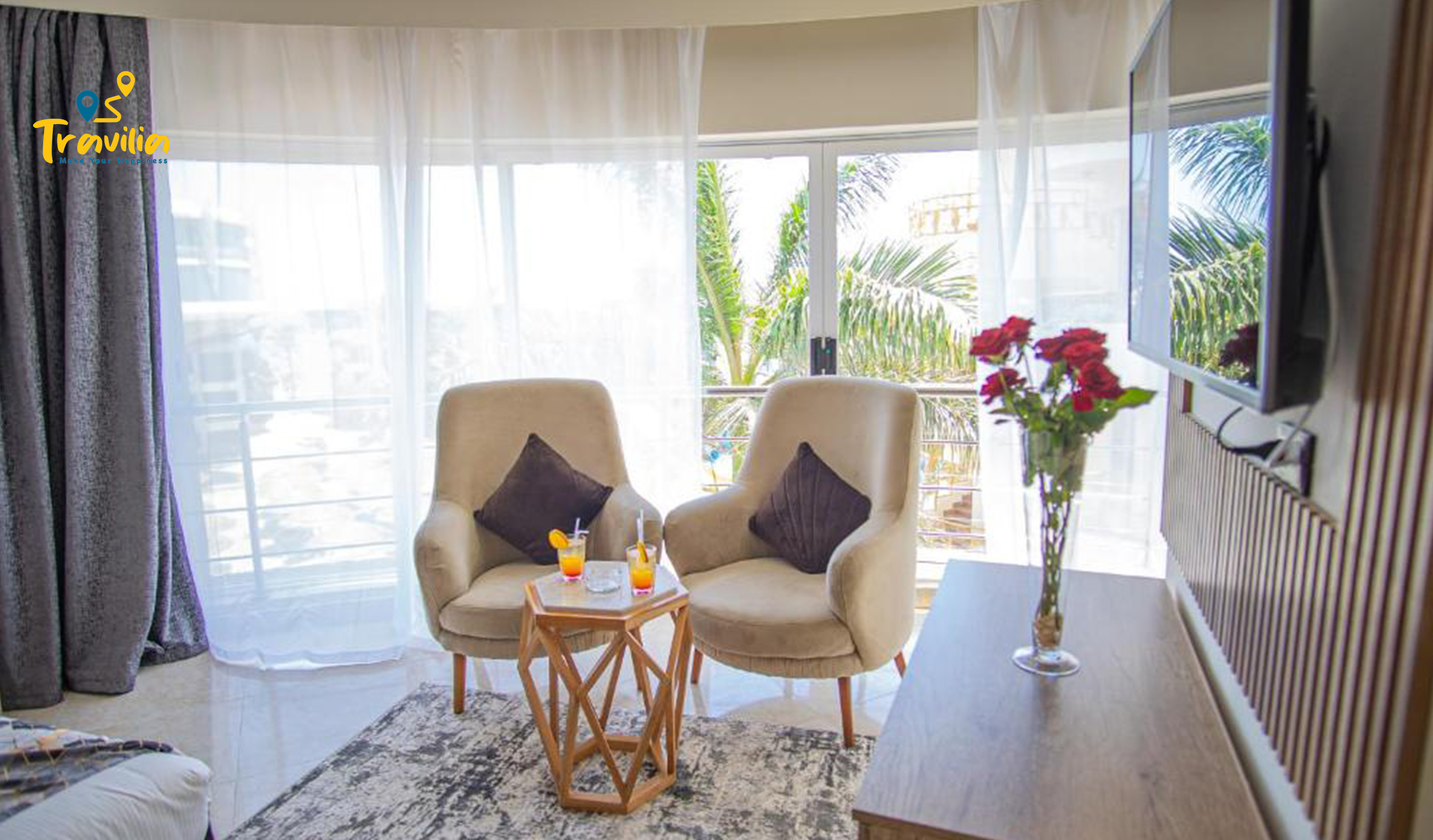 • يقع هذا المنتجع المصنف 4 نجوم على شاطئ البحر الأحمر مباشرة، ويوفر غرفاً مكيّفة مع شرفة، كما يحيط بالـ 5 مسابح الرائعة كراسي استلقاء مظللة، ويتوفر أيضاً مسبح للأطفال مع منزلقات مائية، كما يمكن للضيوف الاستمتاع بخدمة الواي فاي مجاناً في صالة تناول الطعام ومناطق الشاطئ بين الساعة 8 صباحاً وحتى منتصف الليل. تم تزيين الغرف الواسعة على الطراز الحديث، وتتميز جميع الغرف بأنها مكيّفة وتوفر تلفزيون مع قنوات فضائية وثلاجة صغيرة وصندوق ودائع مجاناً وهاتف للاتصال المباشر ومجففاً للشعر.