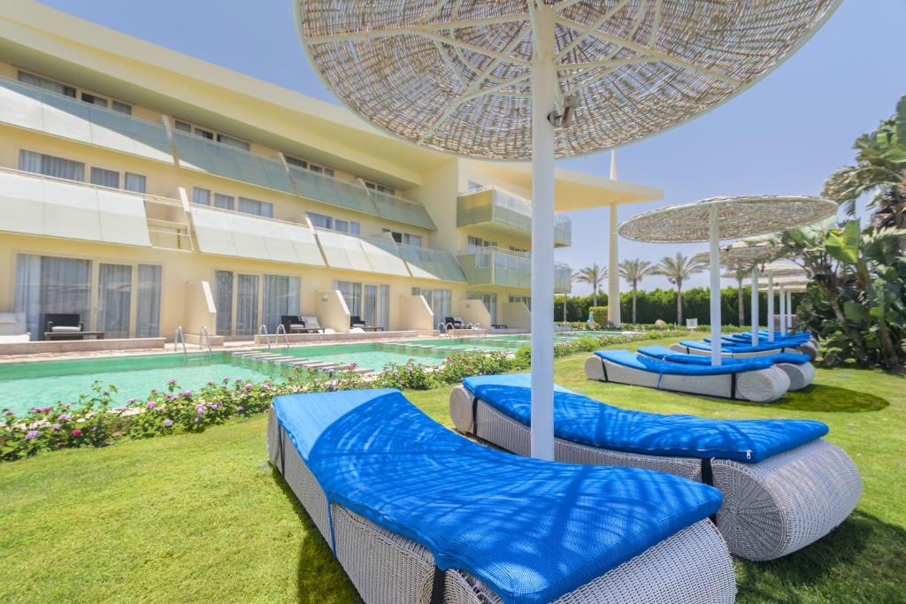 • All rooms and suites feature modern interiors,  each one includes a flat-screen TV and a balcony overlooking the pool or the sea.